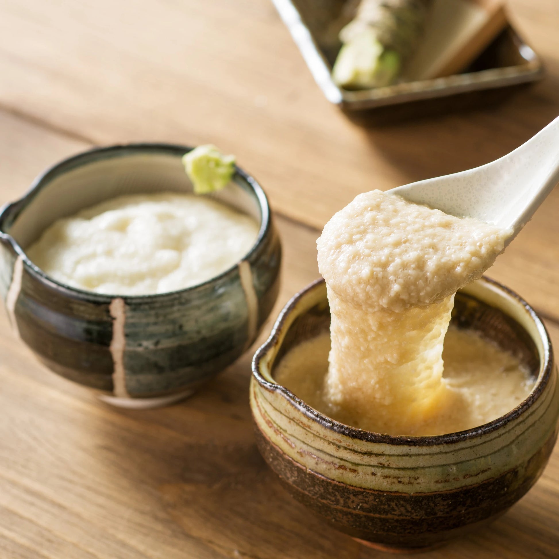 粘りが強く、アクの少ないこだわりの大和芋を使用しており、素材の良さを生かすように粗擦りにしています。
