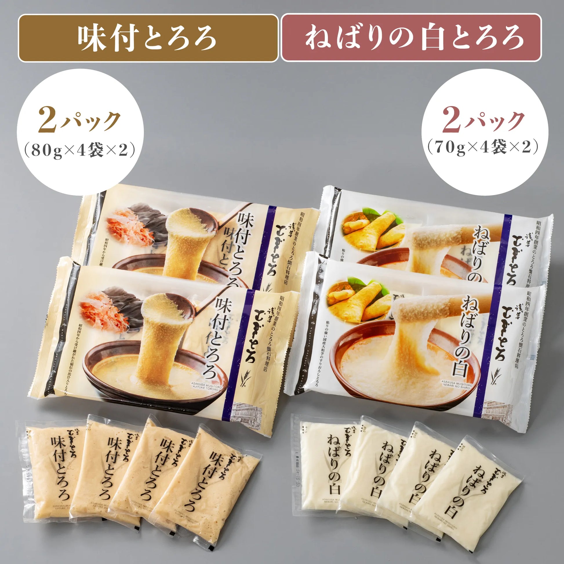 「浅草むぎとろ」独自のかつお節・昆布の出汁で旨みを引き出しており、お店の味を気軽にご家庭で食べられます。