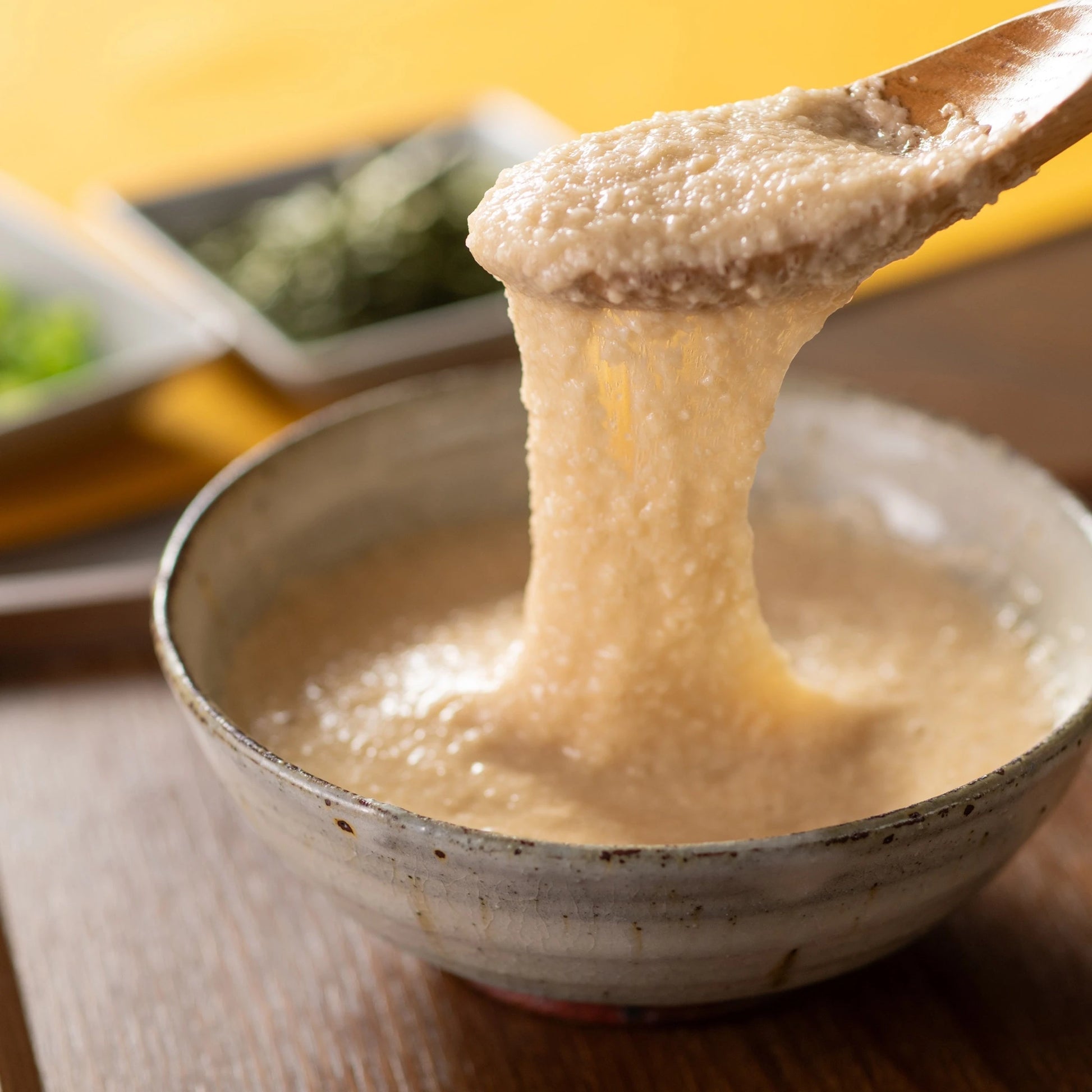粘りが強く、アクの少ないこだわりの大和芋を使用しており、素材の良さを生かすように粗擦りにしています。