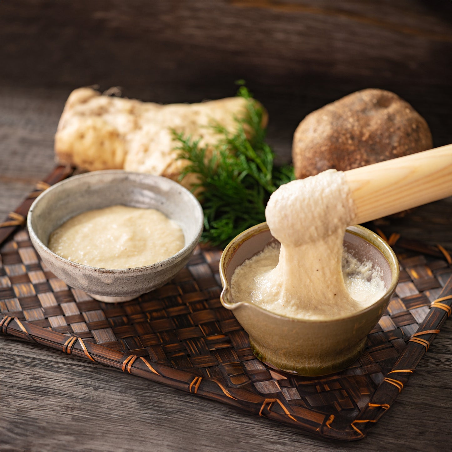 粘りが強く、アクの少ないこだわりの大和芋を使用しており、素材の良さを生かすように粗擦りにしています。
