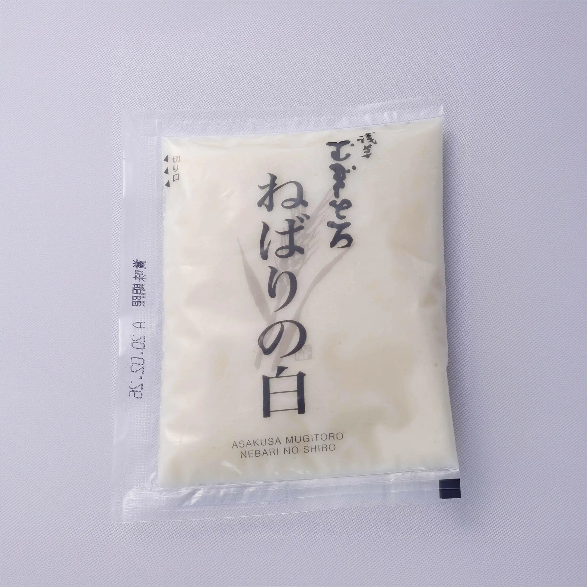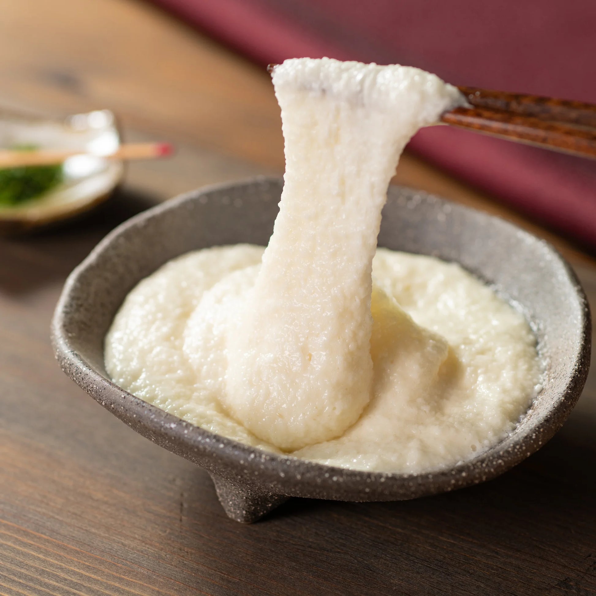 国産大和芋100%使用。芋本来の味を感じられるよう少し粗目に摺りおろしております。お箸でつかめる程のねばり強さと、とろろのしっかりとした味が感じられる「とろろ」です。